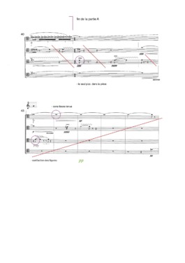 Like cells, the figures have an additive role, of mixtures and components in a single entity of continuous and evolving sound. The equivocal repetition of the figures as well as the variation of the articulations, the attacks, the microtonal intonations, the modifications of the timbre, the harmonics, the dynamics, constitute the sound material and give the music its content and its form. The evolution of the material is therefore more striking than the material itself.